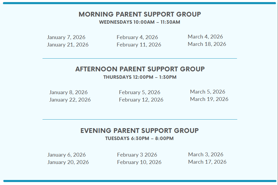 Below is the 2026 Winter/Fall schedule for the parent support group meetings.