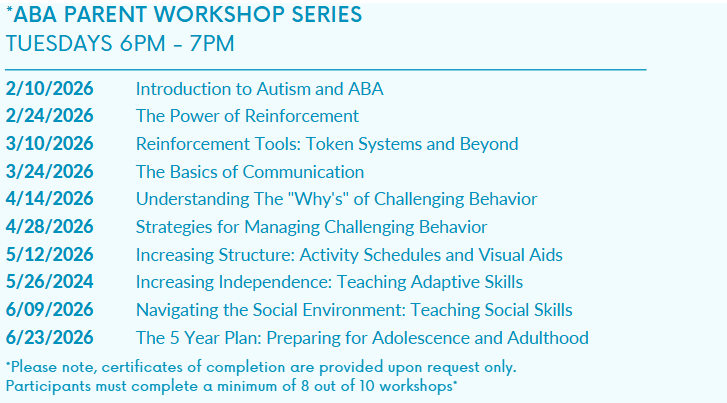Winter/Fall 2026 ABA Parent Workshop Schedule